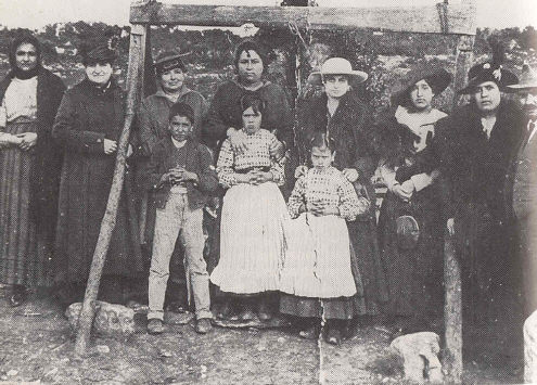 | Os três pastores fotografaram em frente à casa de Marto vários dias antes de 13 de outubro de 1917. Esta foto foi publicada por Avelino de Almeida para ilustrar seus artigos de 15 e 29 de outubro de 1917, no jornal O Seculo e no revista Ilustraçâo portuguesa . |